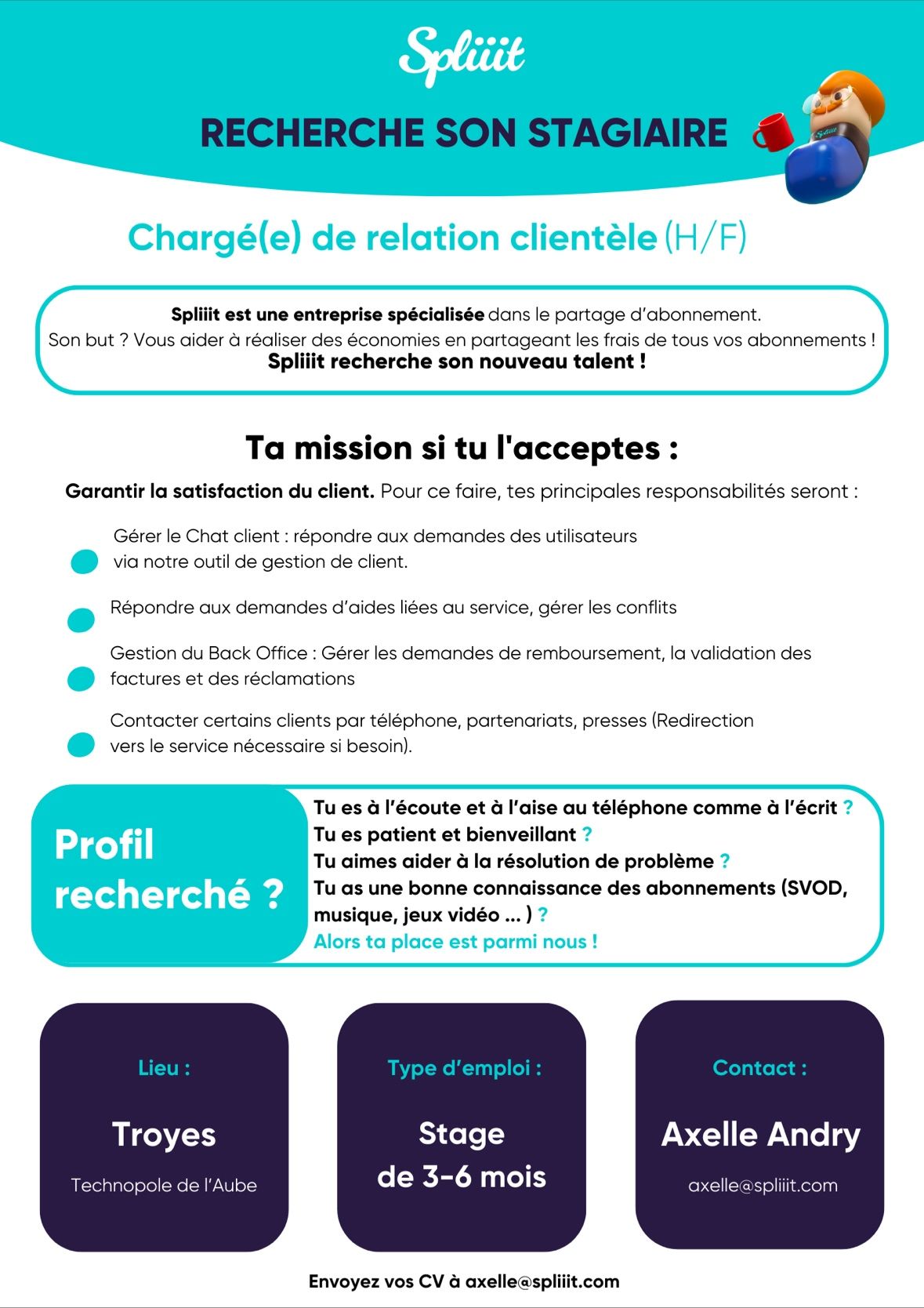N'hésitez pas à nous envoyer vos CV à axelle@spliiit.com