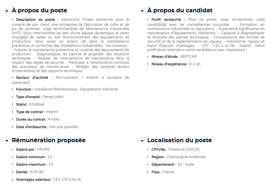 Interaction Troyes recherche pour le compte de son client, une entreprise de fabrication de cidre et de jus de pommes, un(e) technicien(ne) de Maintenance Industrielle (H/F).